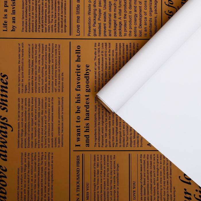 Плёнка матовая двухсторонняя «Газета на крафте» белый, 0.58×10 м