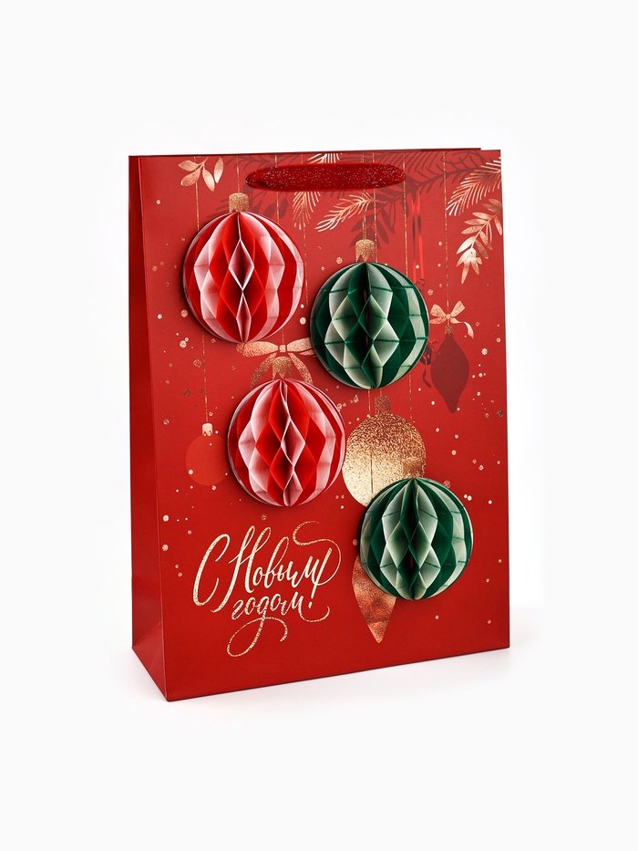 Пакет подарочный «С Новым годом», с бумажными игрушками, 40 × 31 × 11 см