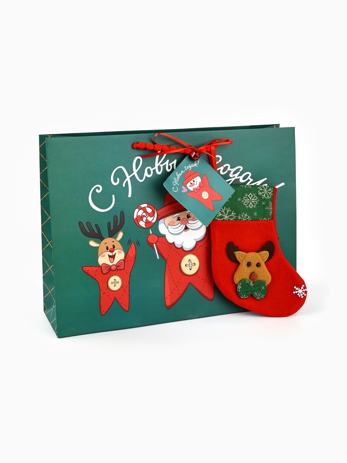 Пакет подарочный «Новогодний подарок», с носком для подарков, 31 × 40 × 11 см