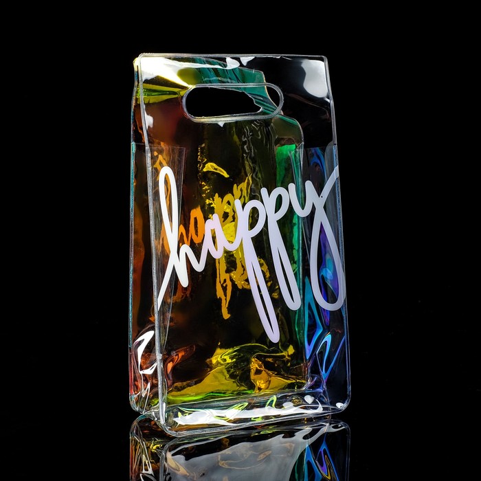 Пакет подарочный из голографического пластика, упаковка, Happy, 13 х 23 х 6 см