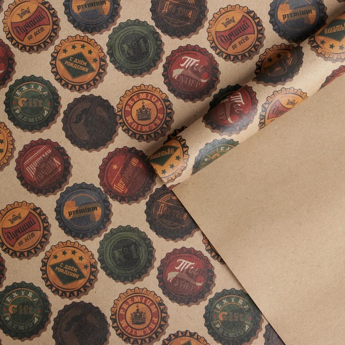 Бумага упаковочная крафтовая «Крышки», 50 х 70 см