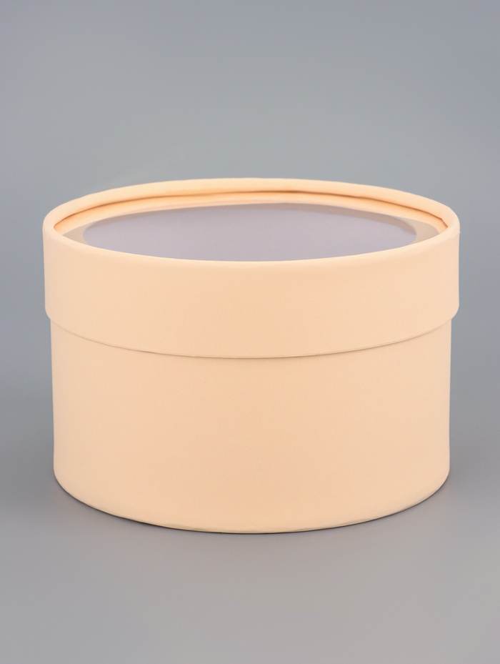 Подарочная коробка круглая «Крема» кремовая, завальцованная с окном, 16×10 см