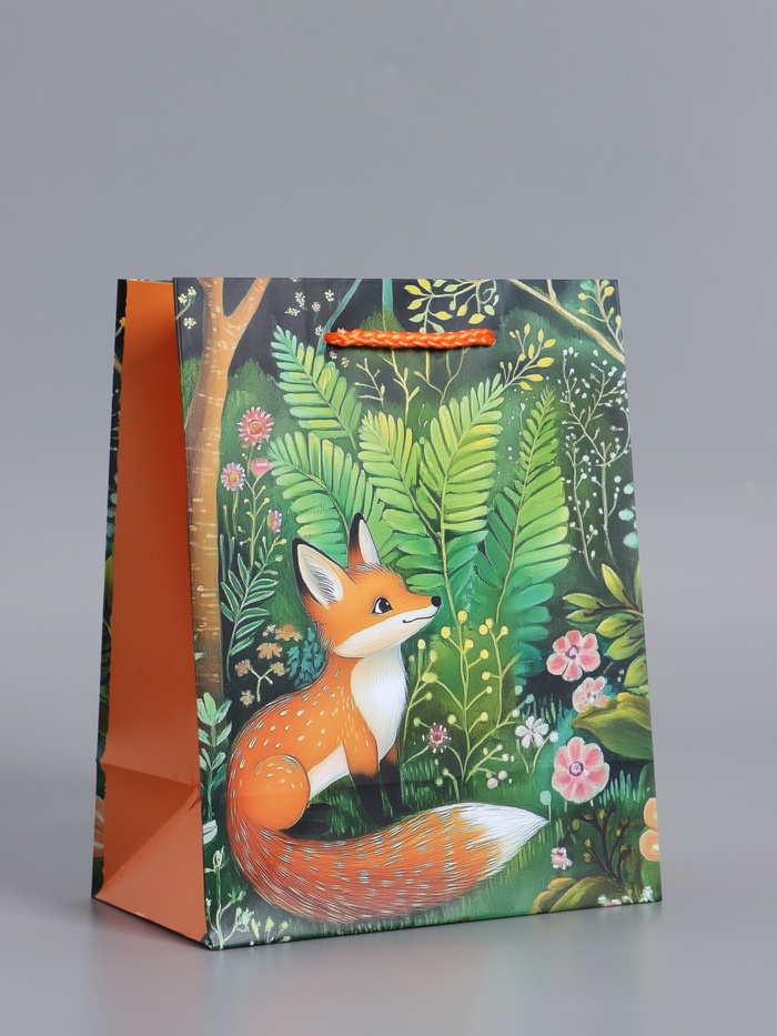 Пакет подарочный ламинированный «Лесные жители», зелёный, 18×22.3×10 см