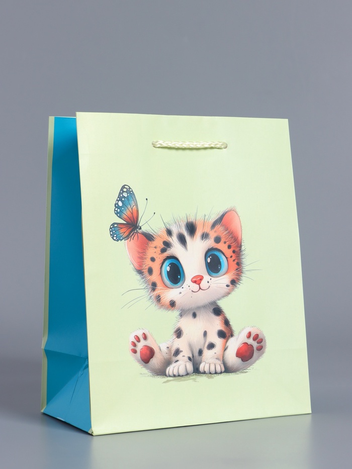 Пакет подарочный ламинированный «Маленький котенок», мятный - голубой, 18×22.3×10 см