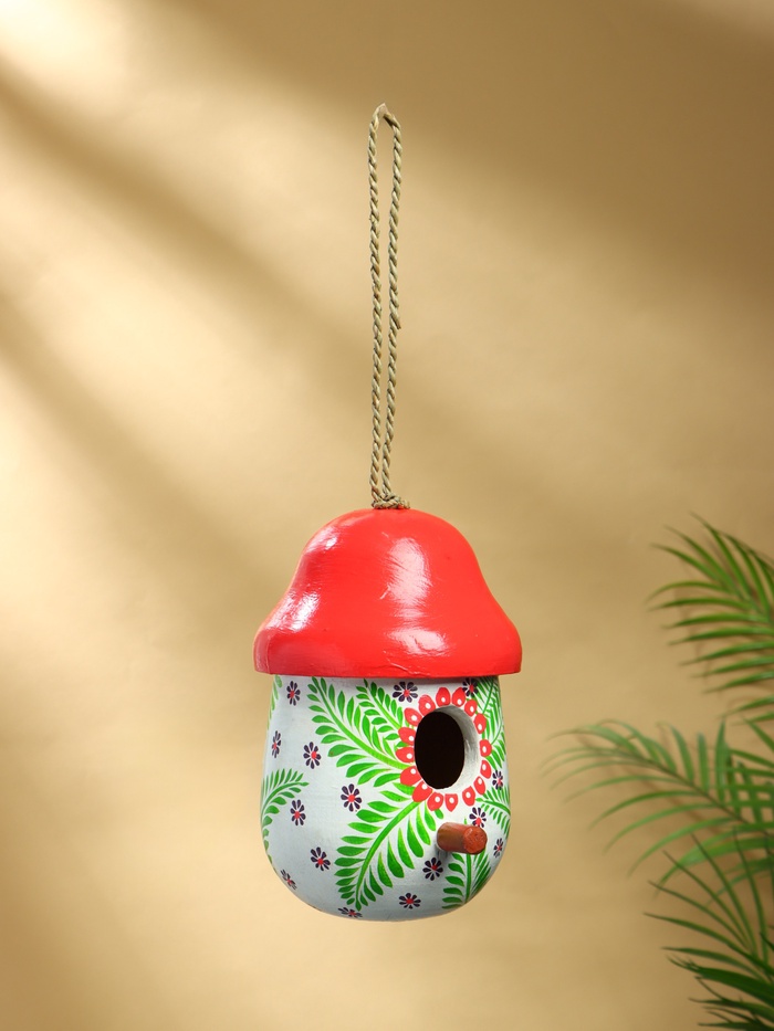 Подвесной декор "Скворечник-грибок" дерево 22х15х15 см, цв.красно-белый