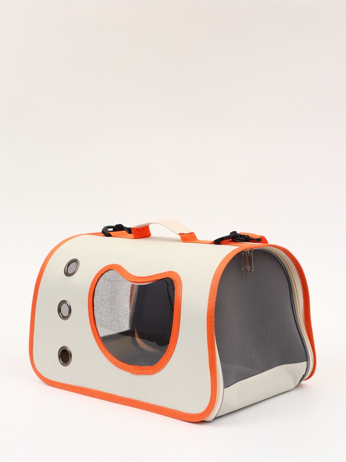 Сумка - переноска каркасная "Кошачий вид", 41 х 27 х 25 см, белая/оранжевая
