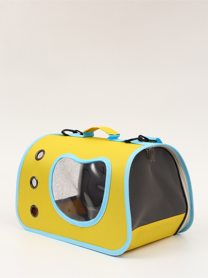 Сумка - переноска каркасная "Кошачий вид", 41 х 27 х 25 см, желтая/бирюза