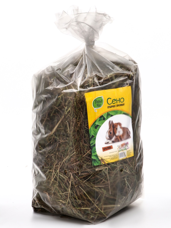 Сено луговое «Зверьё Моё», отборное, ароматное, зеленое, без пыли, крапива, 500 г