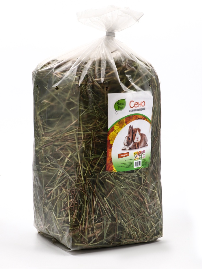 Сено луговое «Зверьё Моё», отборное, ароматное, зеленое, без пыли, календула, 500 г