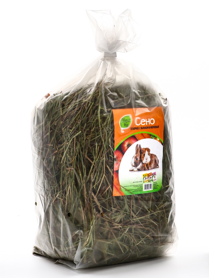 Сено луговое «Зверьё Моё», отборное, ароматное, зеленое, без пыли яблоко, морковь, 500 г