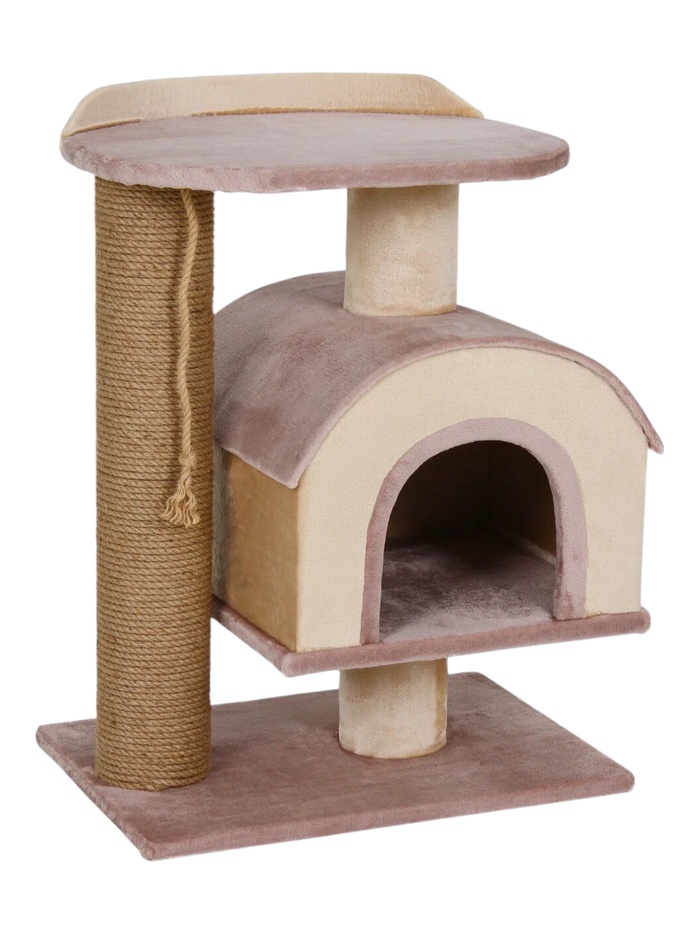 Комплекс для кошек «Рандеву», 62×38×64 с, домик, лежанка, бежевый