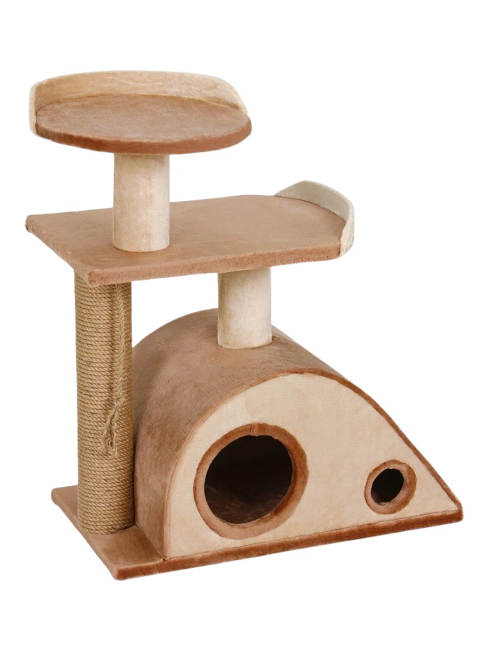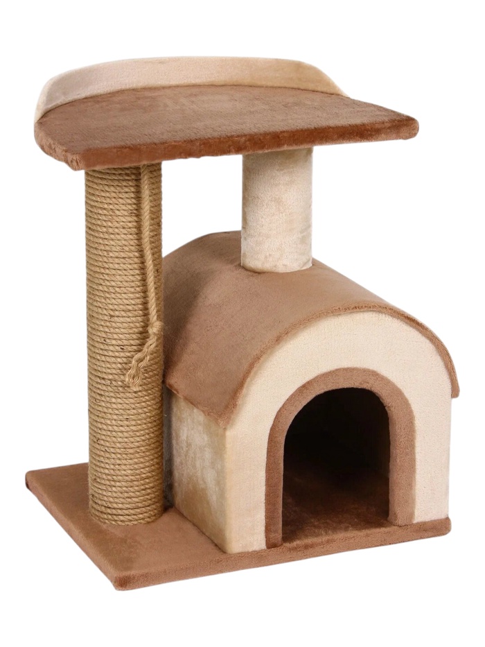 Комплекс для кошек «Полянка», 63×38×48 см, домик, лежанка, коричневый