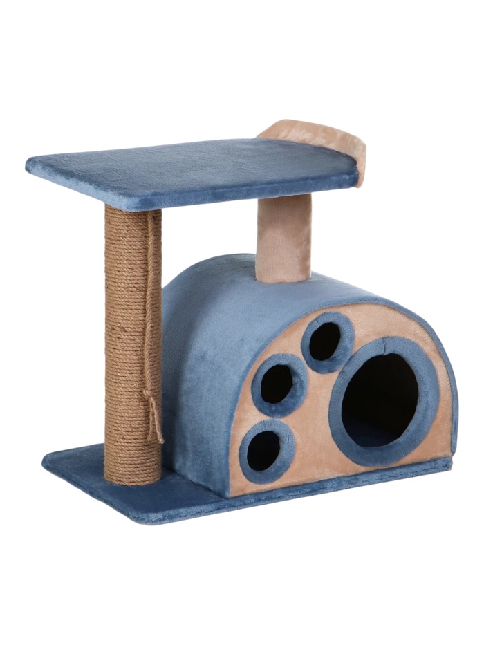 Комплекс для кошек «Лапка», 60×38×60 см, d=10 см, домик, лежанка, голубой