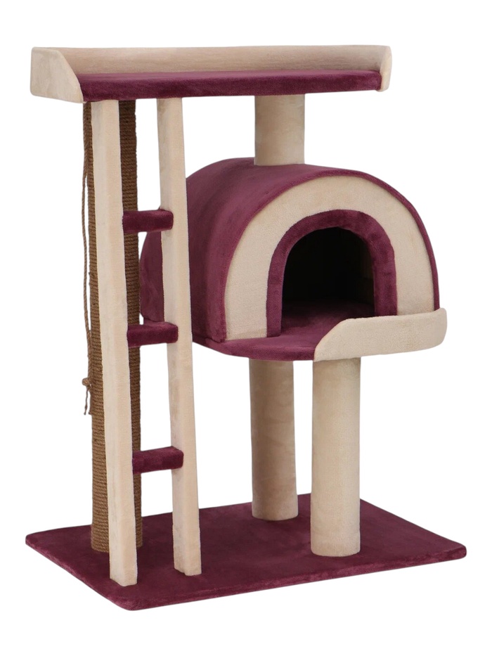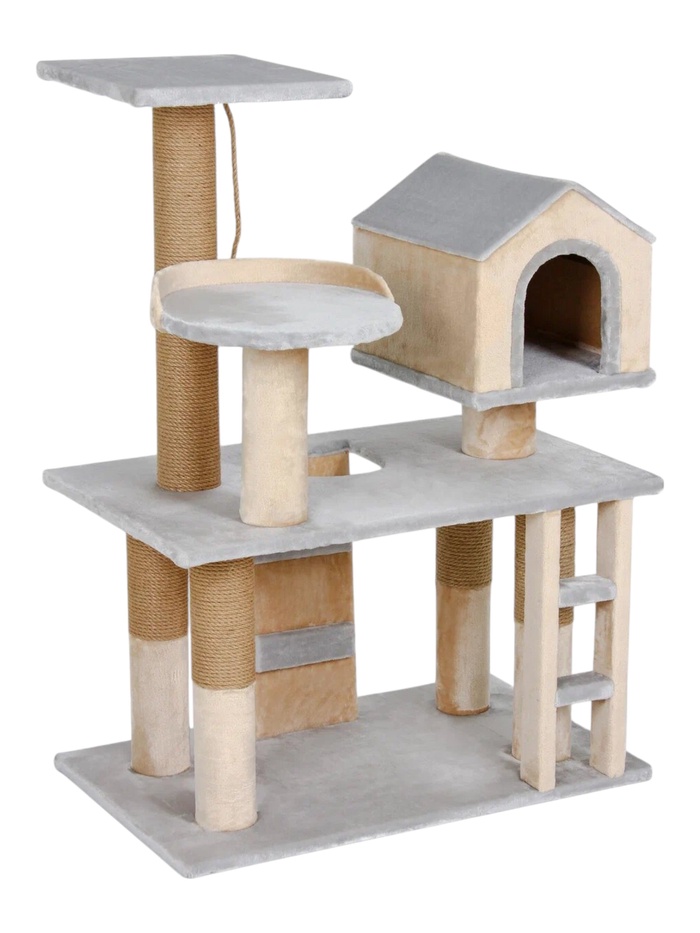 Комплекс для кошек «Мышка», 82×38×62 см, d=10 см, домик, лежанка, бежевый