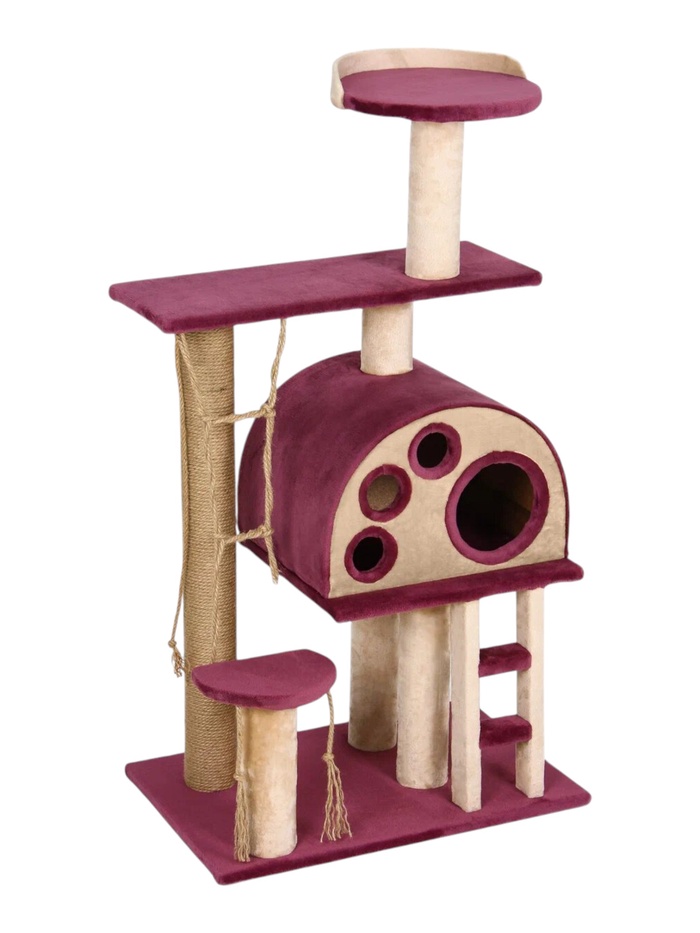 Комплекс для кошек «Фантазия», 72×46×120 см, d=10 см, дом-лапка, лестница, лежанка, розовый