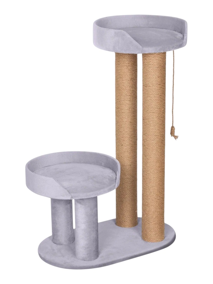 Комплекс для кошек «Крафт», 62×37×65 см, d=10 см, столбик, две лежанки, ковролин, серый