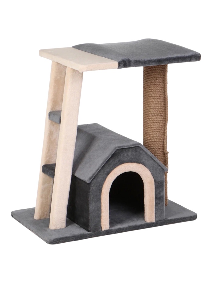 Комплекс для кошек "Камея-2", 60×38×52 см, d=10 см, домик, лестница, лежанка, серый