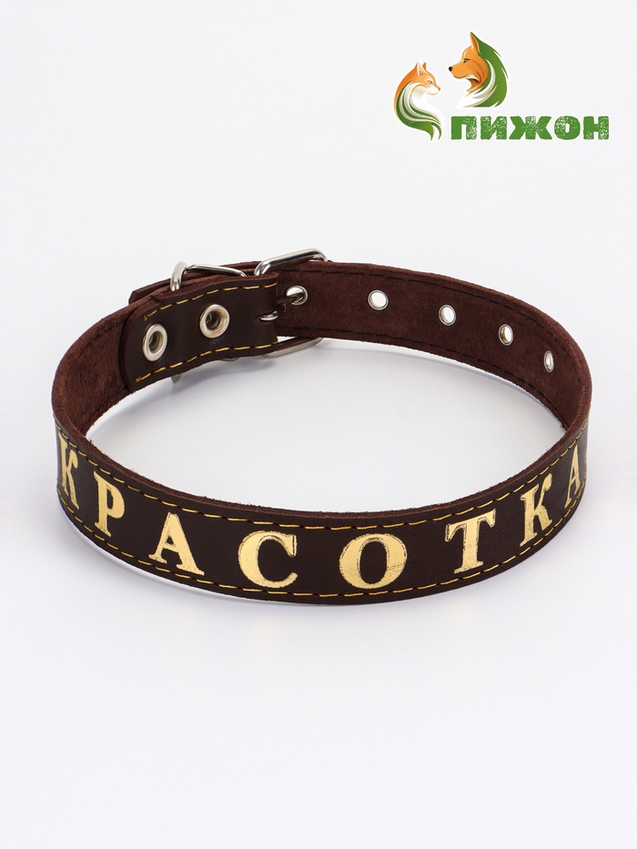 Ошейник кожаный однослойный, тиснёный «Лаю. Кусаю», 48×2, ОШ 32-43 см, коричневый с золотом