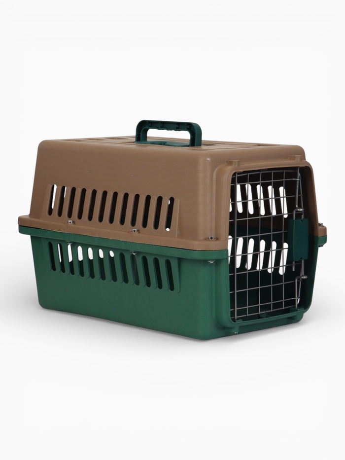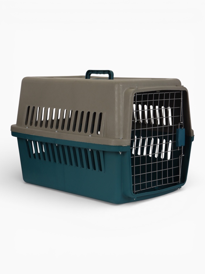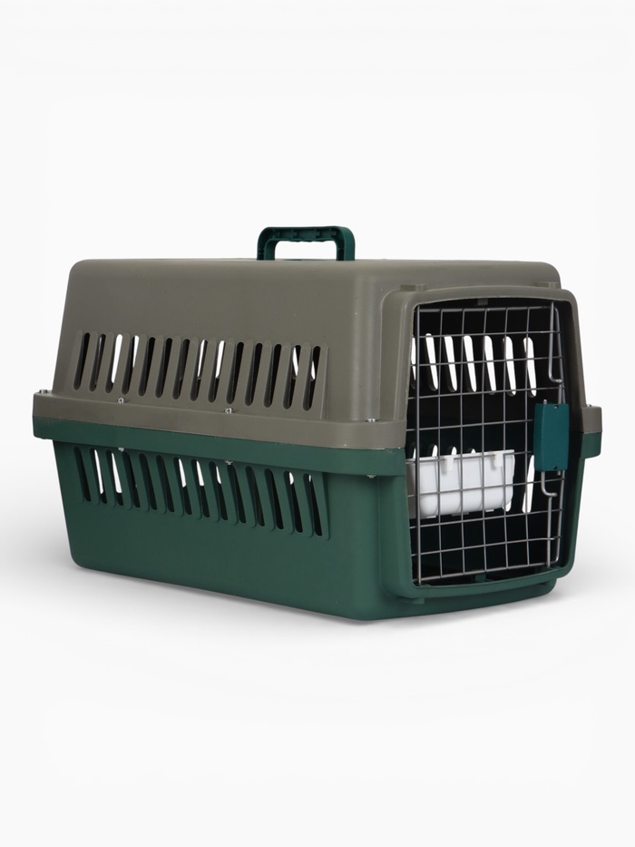 Переноска для животных с пластиковой дверью 49 х 31 х 31 см, серо-зелёная