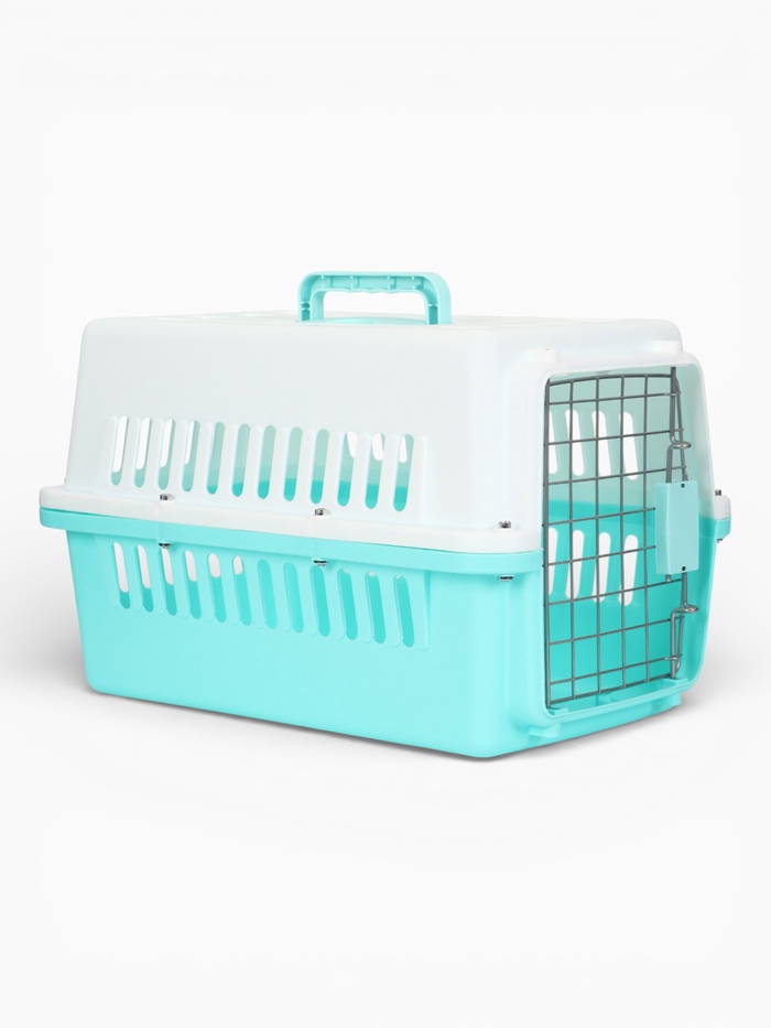 Переноска для животных, 49×31×31 см, с металлической дверью, пластик, бирюзовая
