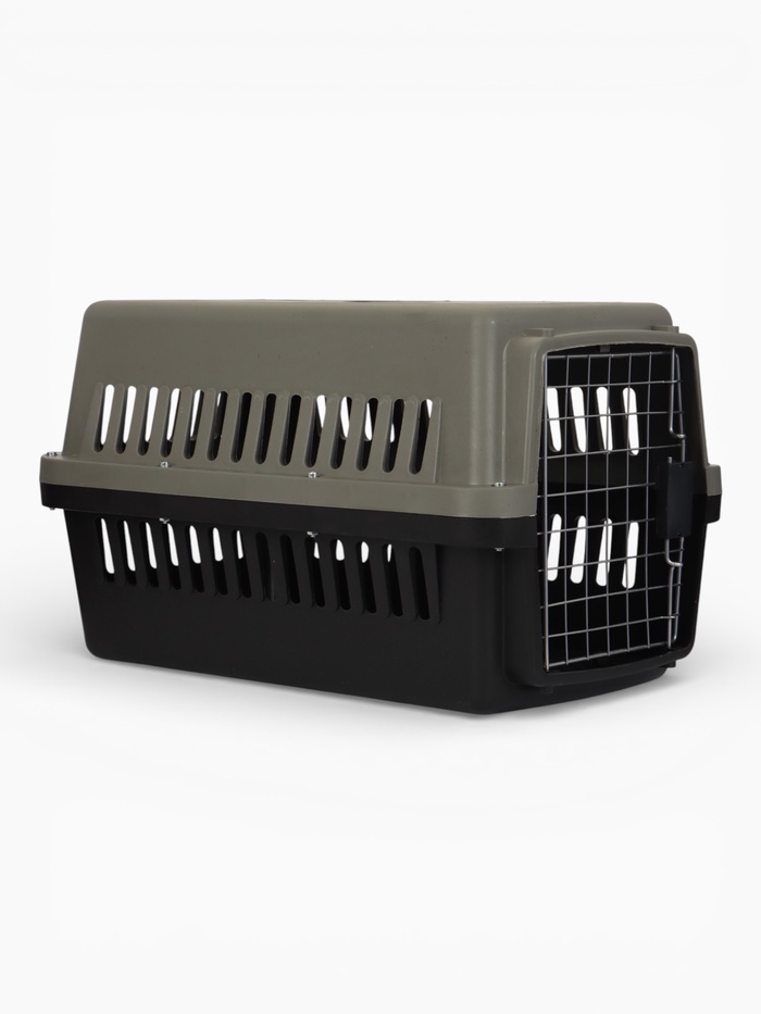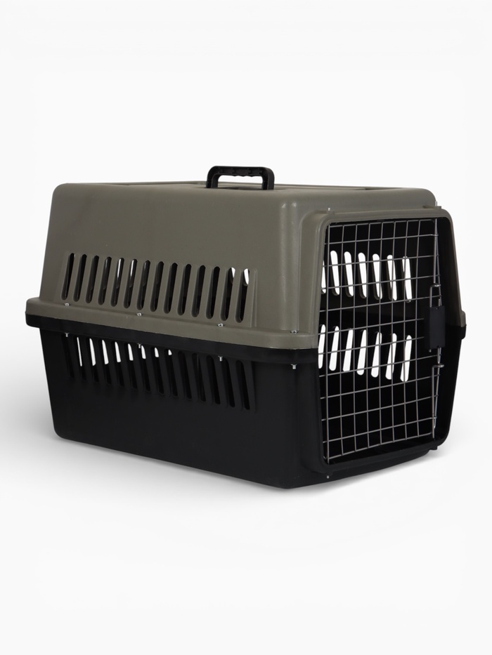 Переноска для животных с пластиковой дверью 59 x 36 x 35 см, темно-серая (+поддон решоткойи 108079