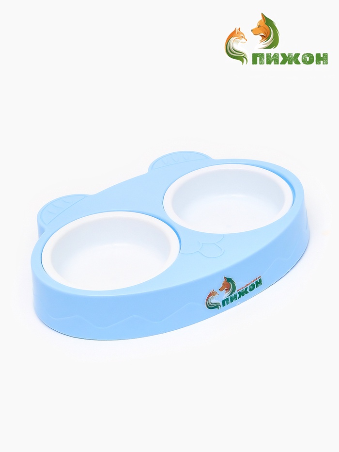 Миска пластиковая двойная «Дуэт», 24×12.5×4.5 см, голубая