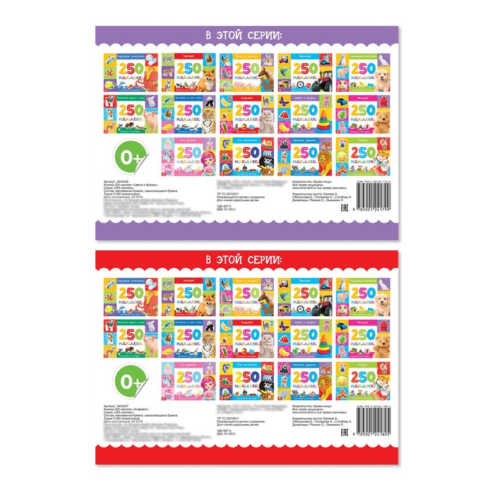 В альбомах представлено 250 стикеров с красочными изображениями. Яркие картинки положительно влияют на визуальное восприятие малыша, память и воображение.