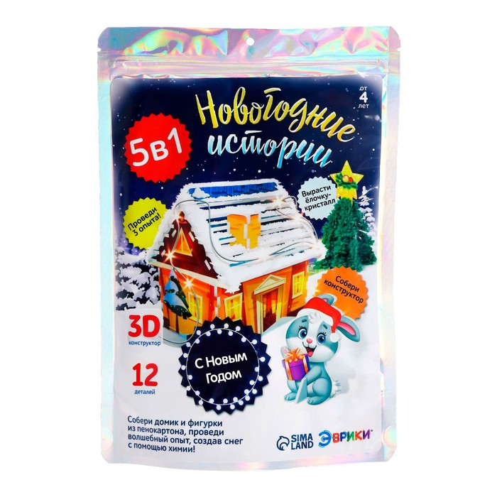 Удивительный опыт позволит создать настоящий снег. Им можно украсить фигурку и вырастить кристаллы из «Морозного порошка». Для сборки игрушки не требуется клей.