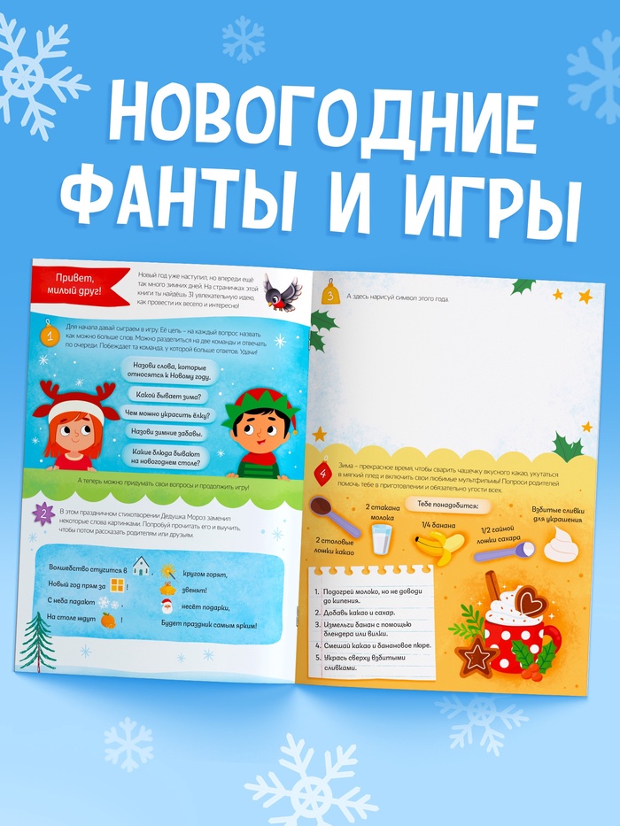 Каждый день открывайте новую страницу и выполняйте предложенное задание. Это может быть игра, загадка, рецепт или творческое задание, которое подарит радость и вдохновение. Процесс напоминает маленькое путешествие, где каждая идея — это ключ к новым открытиям и праздничному настроению.