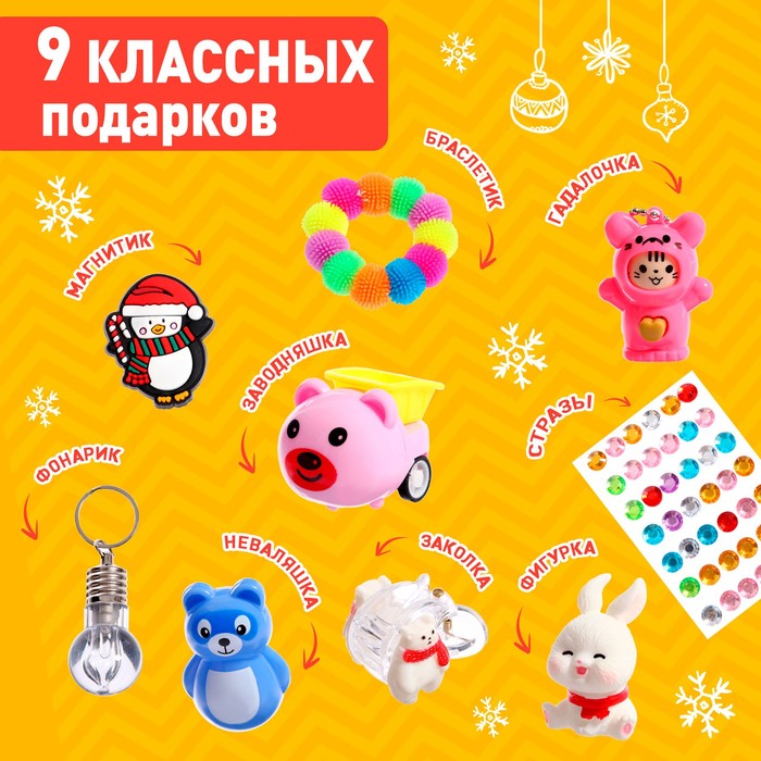 Адвент-календарь «Новогодняя история» — это замечательный способ создать атмосферу праздника и подарить детям ожидание чуда. Девять окошек с маленькими сюрпризами готовы радовать и удивлять каждый день в преддверии Нового года.Размер адвент-календаря 28 × 25 см