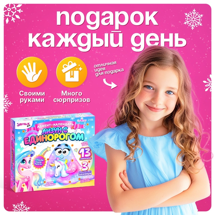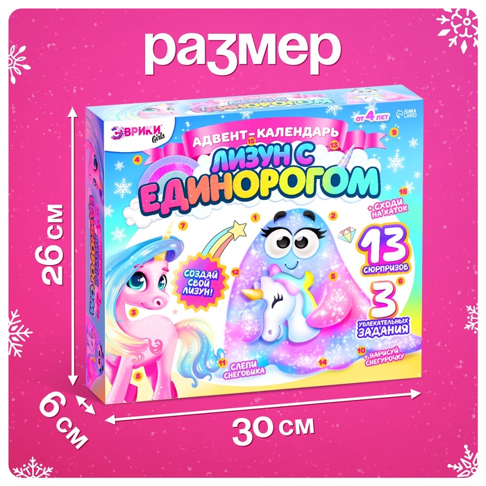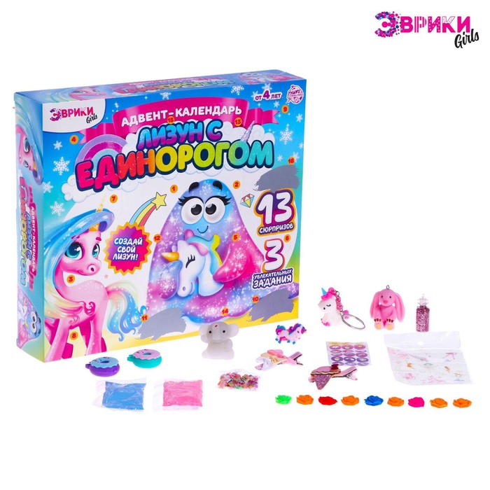 Адвент-календарь «Лизун с единорогом», 13 сюрпризов, 3 задания