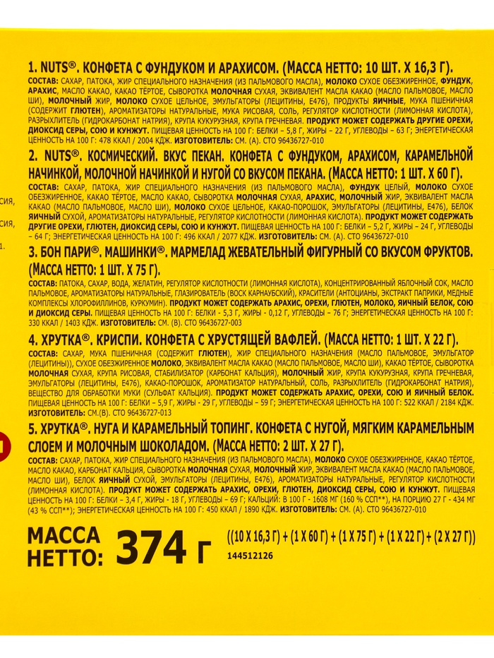 Подарите себе и своим близким атмосферу волшебства и ожидания с новогодним адвент-календарём НАТС! Этот чудесный календарь весом 415,3 г станет вашим спутником в преддверии самого сказочного времени года, позволяя с радостью отсчитывать дни до Нового года. Открывайте новую дверцу, за которой вас ждут сладкие сюрпризы и невероятные угощения.
