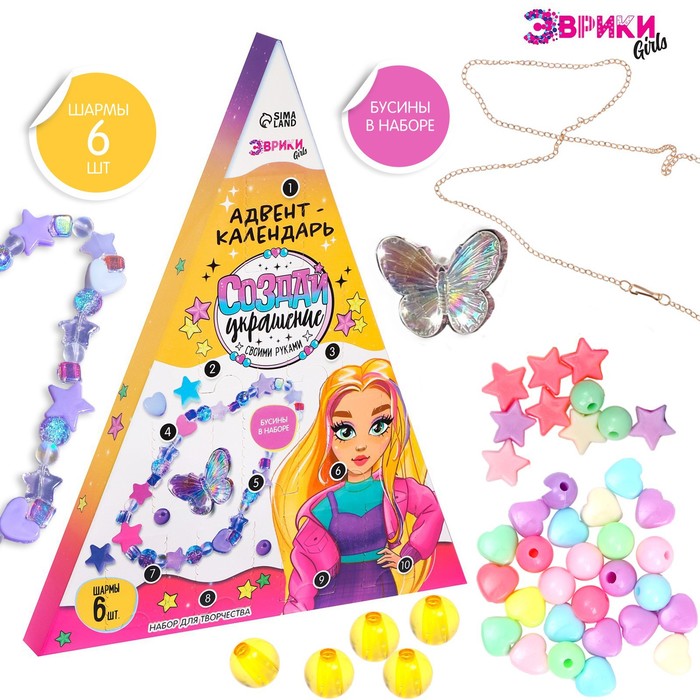 Адвент-календарь «Создай украшение» вдохновит на создание собственных маленьких шедевров! За 10 дней до Нового года открывайте по окошку и находите новые элементы для создания украшения. Внутри 6 шармов и множество других элементов для ваших изделий.