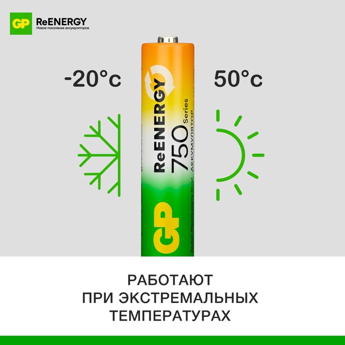 Аккумулятор GP, Ni-Mh, AAA, HR 03-2BL, 1.2 В, 750 мАч, блистер, 2 шт.