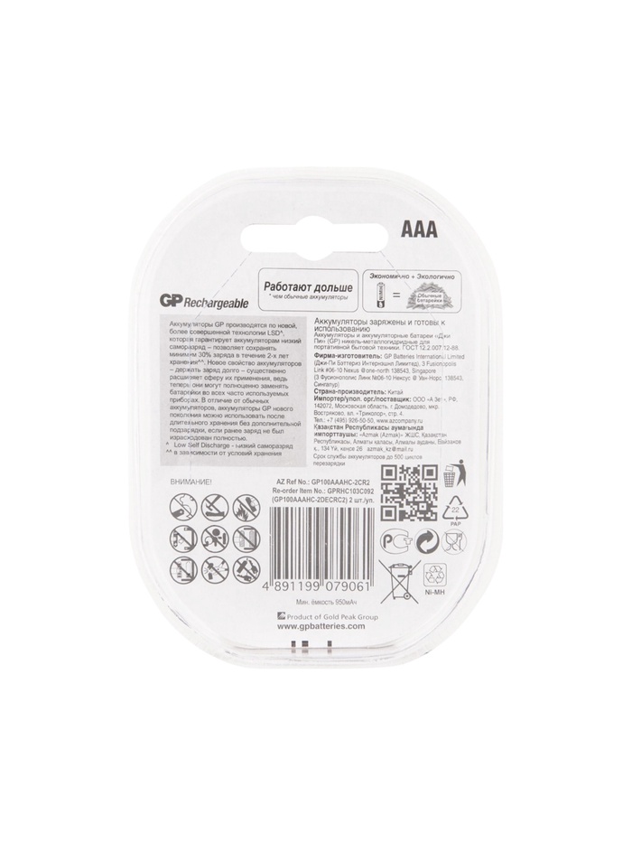 Перезаряжаемый аккумулятор от торговой марки GP — незаменимый аксессуар, поддерживающий множество устройств. Он надолго обеспечит непрерывную работу вашего девайса! Особенности: энергоёмкость выше, чем у алкалиновых элементов питания; не садится без использования; перезаряжается до 500 раз!