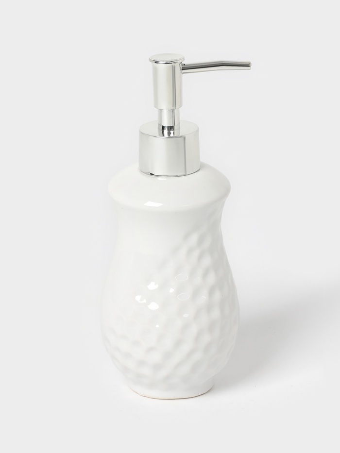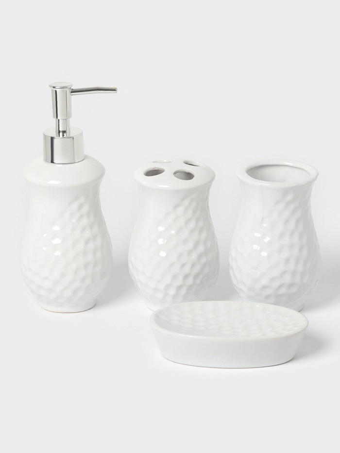 Аксессуары для ванной Доляна «Рельеф», 4 предмета, дозатор 340 мл, мыльница, 2 стакана 300 мл, белые