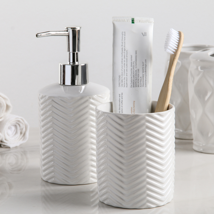 - Набор аксессуаров значительно облегчит хранение ванных принадлежностей.