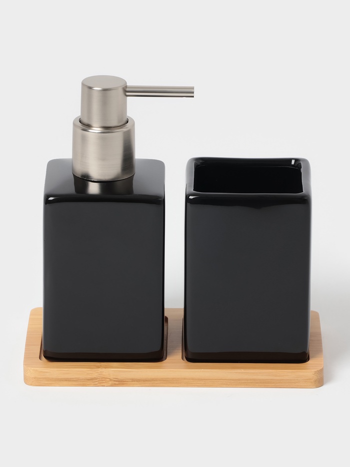 Набор аксессуаров организует пространство и станет стильным украшением Вашей ванной комнаты. За счет сдержанного дизайна данный керамический набор в ванную подойдет к любому дизайну ванной комнаты. Набор состоит из 3 предметов: стакан, мыльница, подставка.
