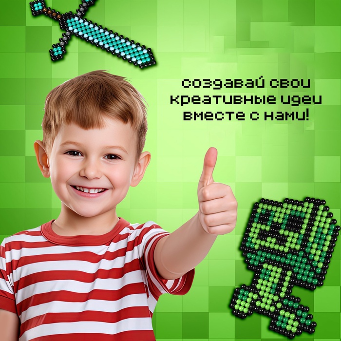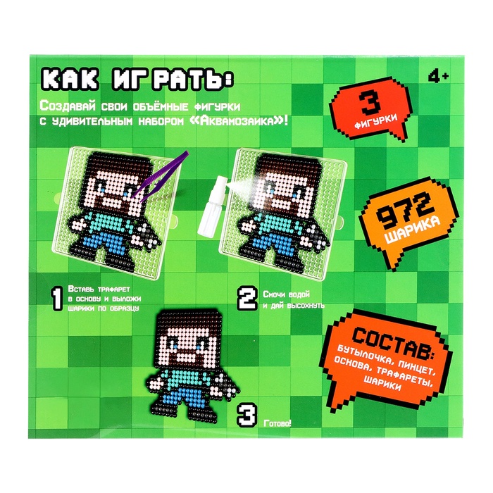 Аквамозаика «Кубамир» — это набор для творчества, с которым можно сделать красочные объёмные фигурки. Юные любители известной игры порадуются возможности собрать любимых персонажей из бисера. Яркие картинки подойдут в качестве подарка или для украшения комнаты.