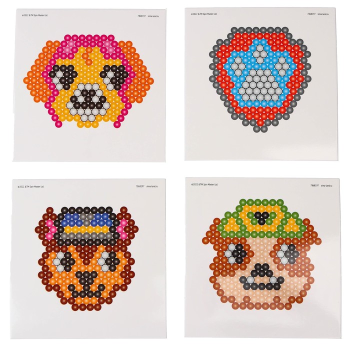 С аквамозаикой «Щенячий Патруль» ребёнок соберёт из шариков-пикселей 4 объёмных фигурки. С поделками можно играть или украсить интерьер.