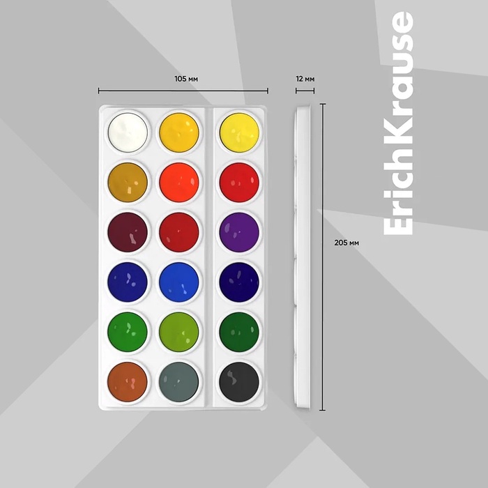 Классические акварельные полусухие краски в облегченной пластиковой палетке без крышки, представлены в картонной упаковке с хидером.
