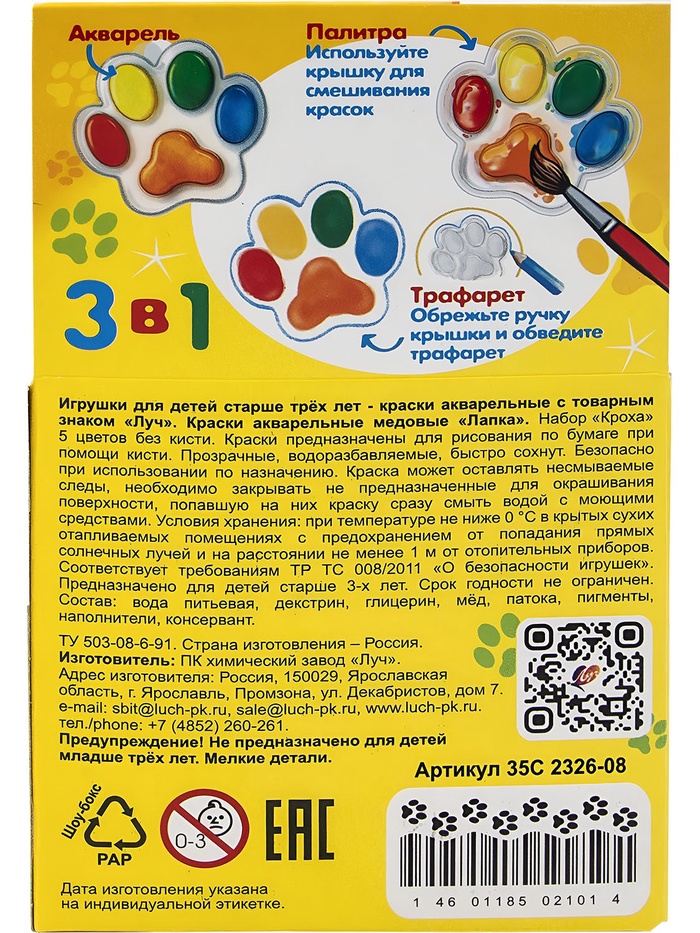 Фигурная акварель «Лапка», набор из 5 цветов — простой и понятный формат для детского рисования, где важен не результат, а сам процесс. Необычная форма добавляет элемент игры: краски воспринимаются как часть сюжета, а не только как художественный материал.