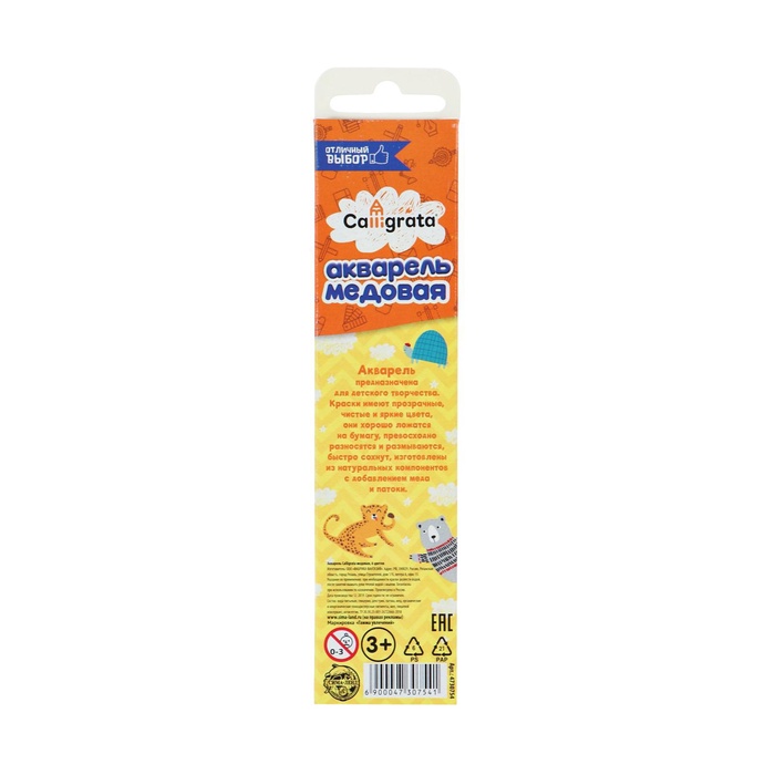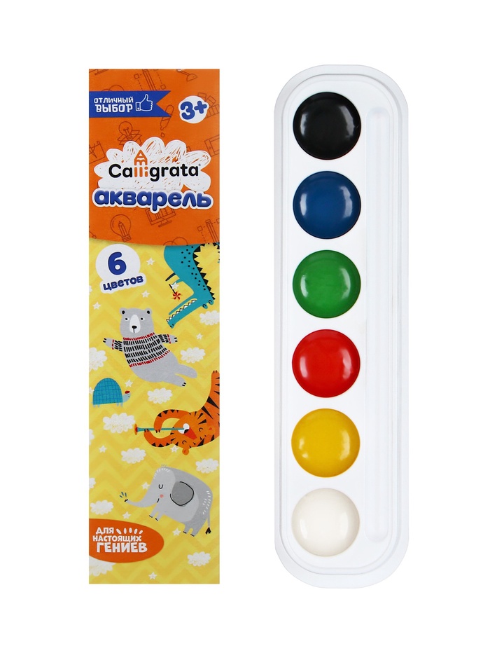 Медовая акварель Calligrata серии ""Отличный выбор"" разработана с учетом рекомендаций педагогов. Идеально подходит для занятий рисованием в детском саду, школе и дома. Яркие, чистые цвета развивают фантазию и интерес к творчеству. Акварель легко смывается с рук. 6 натуральных природных цветов акварели отлично смешиваются между собой и обеспечивают однородное окрашивание. Краски быстро высыхают и не портятся со временем. Безопасны для детей, нетоксичны. Выпускаются в картонном пенале с отделением для кисточки. Упаковка обладает компактными размерами и легким весом.