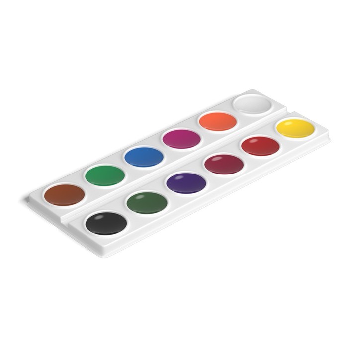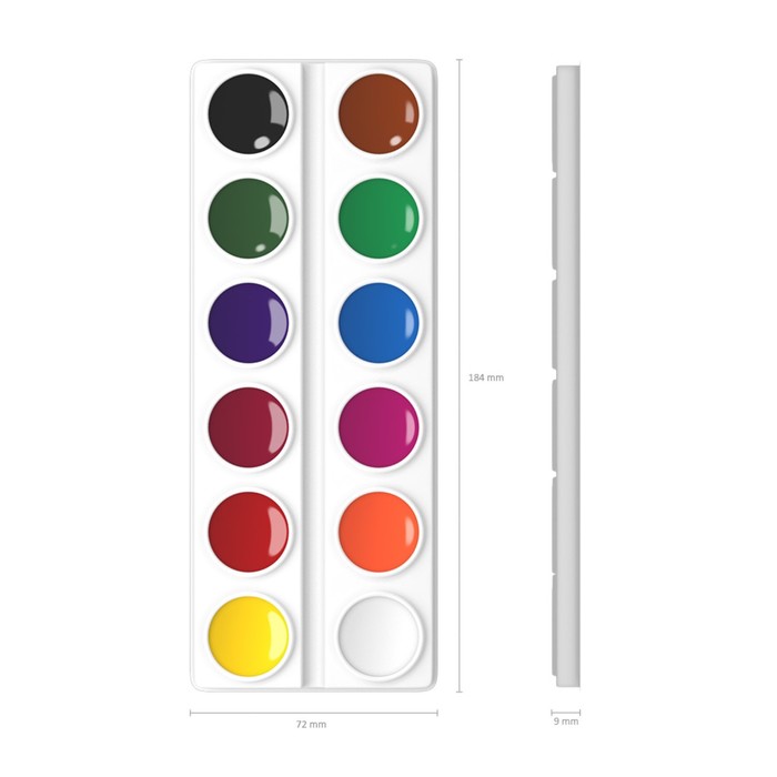 Классические акварельные полусухие краски в облегченной пластиковой палетке представлены в картонной упаковке с хидером.