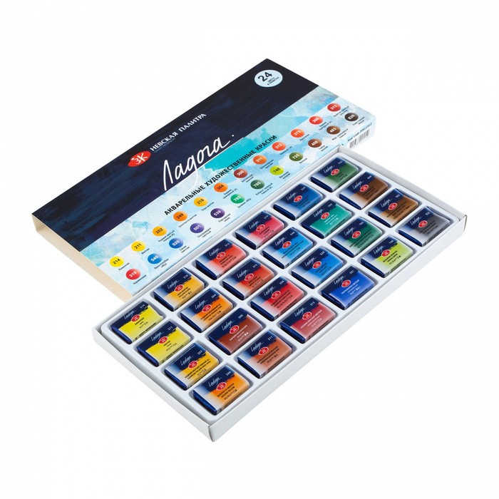 Набор акварельных художественных красок "Ладога" 24 цвета в кюветах 2,5 мл.