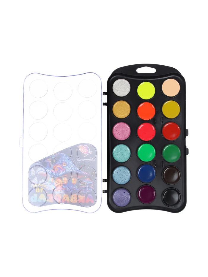 Акварель «Луч: Фантазия», 18 цветов, классический + неон + перламутровый, без кисти