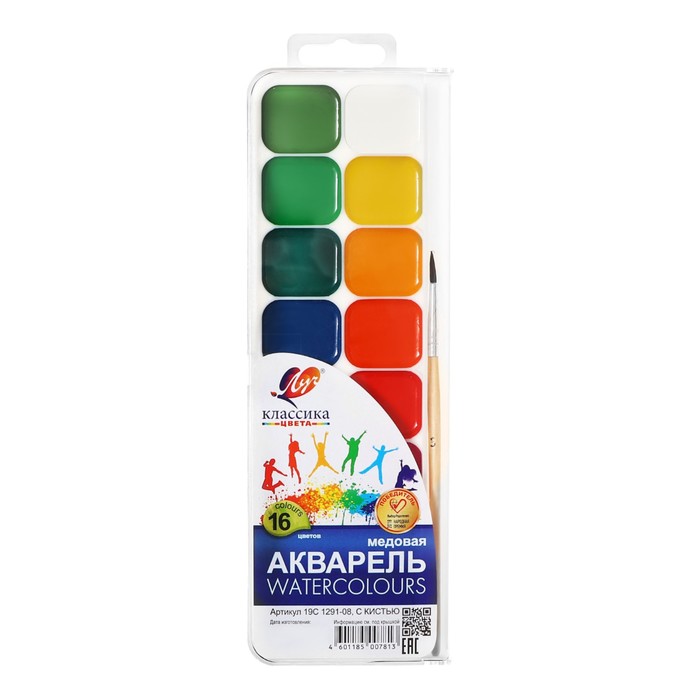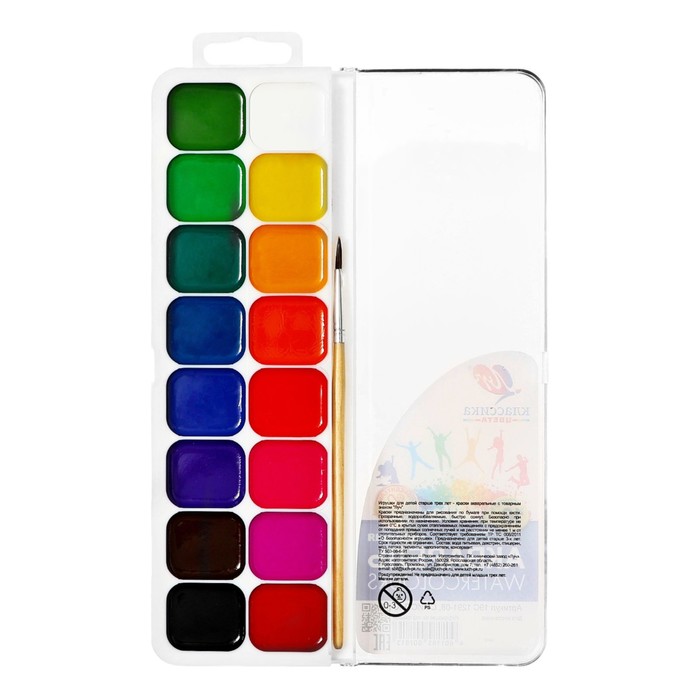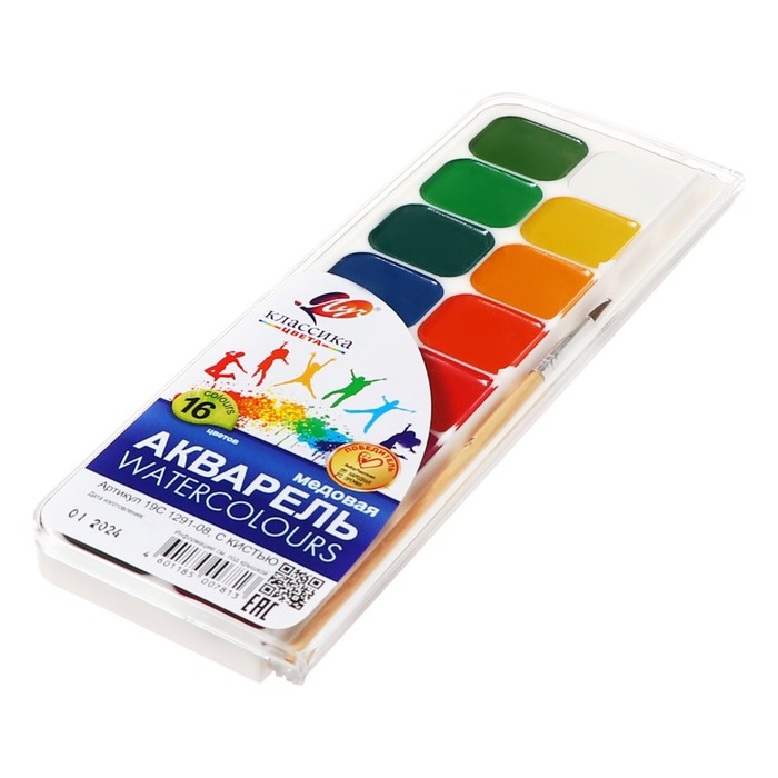 Краски акварельные медовые полусухие изготовлены на основе натуральных природных компонентов и высококачественных пигментов. Акварель предназначена для детского творчества и различных живописных работ.
