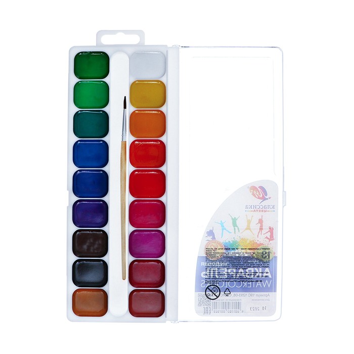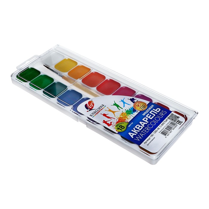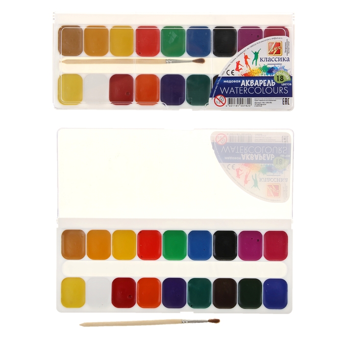 Краски акварельные медовые полусухие изготовлены на основе натуральных природных компонентов и высококачественных пигментов. Акварель предназначена для детского творчества и различных живописных работ.