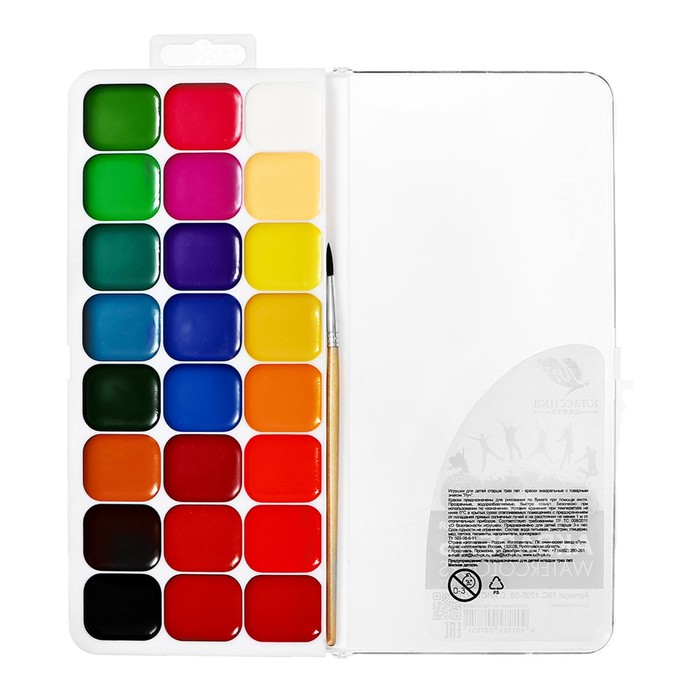 Краски акварельные медовые полусухие изготовлены на основе натуральных природных компонентов и высококачественных пигментов. Акварель предназначена для детского творчества и различных живописных работ.