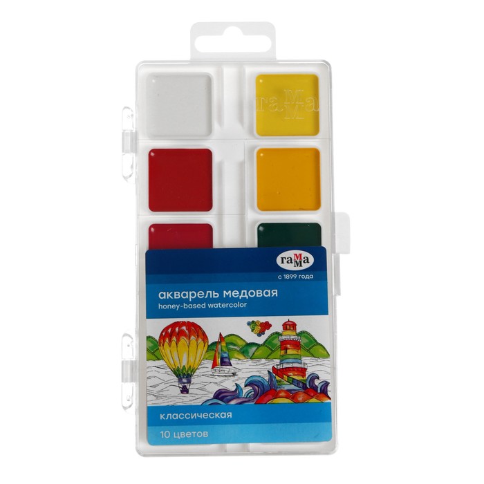 Цвета акварели яркие, чистые и насыщенные благодаря качественному прозрачному связующему. Все краски расположены на одной подложке, словно на палитре настоящего художника.